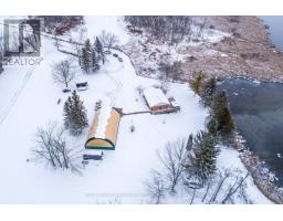 Welcome to this charming bungalow set on 1.17 acres with direct frontage on the Scugog River, offering a peaceful setting. The main floor features a bright kitchen with hardwood floors and a walkout to the yard, a dining room with access to the deck, and a comfortable living room with a gas fireplace. Three bedrooms and a 4-piece bath complete the level. The fully finished walkout basement expands your living space with a cozy recreation room featuring a gas stove and bar area, an office, and a combined laundry/utility room. Outside the property impresses with a durable steel roof, a Generac system installed in 2024, and a 35' x 60' Quonset Hut with a 14' door, ideal for storage, hobbies, or equipment. Enjoy direct waterfront access and the privacy of a spacious lot with still being minutes to Lindsay and all amenities. (id:55730)
