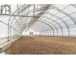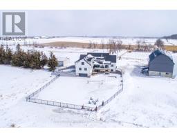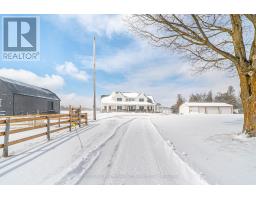 Welcome to an exceptional 98-acre equestrian estate on the outskirts of Omemee, where luxury living meets a fully equipped, turnkey horse facility. Custom built in 2023, this stunning property is meticulously designed for both refined living and professional functionality featuring top-of-the-line construction, 68 workable acres and a private pond. The luxurious home offers over 7,000 sf of living space with 6 bedrooms (4+2), 5 bathrooms, and high-end finishes throughout. The main level features an open-concept layout with a chef-inspired kitchen complete with a centre island, coffee bar, and walk-in pantry. The living room, with a vaulted ceiling is anchored by a fireplace with a walkout to the deck overlooking the property. A private office, 2-piece bath, and laundry room with access to the upper 9m x7m insulated/heated attached garage, an exercise room above the garage, and a wrap-around deck add convenience. The main floor primary suite is a true retreat, offering a spacious walk-in closet with centre island, walkout to the deck, and a luxurious 5-piece ensuite. A dedicated dog spa with built-in wash station adds a thoughtful touch. Upstairs includes 3 generously sized bedrooms, a sitting room, a loft overlooking the living room and a 4-piece bath. The finished walkout basement with in-floor heating features a recreation room with access to a stamped concrete patio, an outdoor kitchen, and an inground pool. A movie/media room, 2 bedrooms, access to the lower 9m x 7m insulated/heated attached garage, 2 additional baths, and a pool change room complete the lower level. Equestrian facilities include an indoor riding arena (21.2m x 50m), a potential upper viewing area from the restored Dutch bank barn with 8 stalls, wash bay, heated tack room, heated laundry/water room, and 3 outdoor paddocks. Additional outbuildings include a Quonset hut (13.5m x 18.5m) and heated storage/workshop (9m x 21m). (id:55730)
