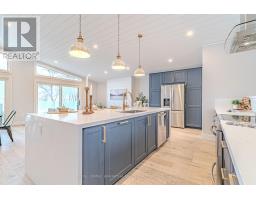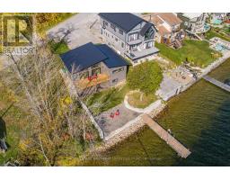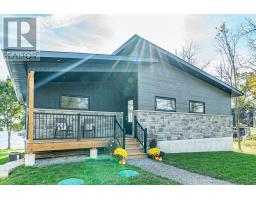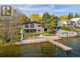 Welcome to elevated waterfront living on beautiful Sturgeon Lake. This custom-built raised bungalow offers year-round enjoyment with direct waterfront and stunning lake views from the main living spaces. The thoughtfully designed main level features a bright open-concept layout centered around a beautifully appointed kitchen with quartz countertops, a spacious centre island, pantry storage, and picturesque views of the lake. The living and dining area is ideal for entertaining or relaxing, with a walkout to the deck where you can take in the tranquil waterfront setting. The main floor also includes a spacious primary bedroom with walk-in closet, a second bedroom with double closet, and a stylish 3-piece bathroom with in floor heating. The finished walkout lower level adds exceptional living space, highlighted by a large recreation room with built-in bar and direct access to the stamped concrete patio, creating the perfect indoor-outdoor entertaining area. This level also offers a home office, playroom, laundry room, a 4-piece bathroom, and an unfinished utility room providing additional storage. Outside, enjoy the ultimate lakeside lifestyle with a private dock, direct shoreline, and beautifully designed outdoor spaces ideal for relaxing or hosting family and friends. A durable steel roof and quality finishes throughout reflect the care and craftsmanship that went into this custom-built home. An exceptional opportunity to enjoy modern comfort, thoughtful design, and the unmatched beauty of life on Sturgeon Lake. Property has a Generlink as an alternative power source. (id:55730)