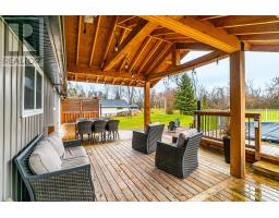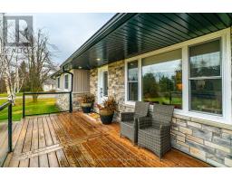 Welcome to this spacious 3+2 bedroom bungalow set on just over an acre, offering the privacy of country living just outside of Woodville. The main floor features a bright living room with a propane fireplace, a modern kitchen with quartz countertops, a centre island, and a walkout to the large covered deck, seamlessly combined with the dining area. A 5-piece bath serves the level, along with a generous primary bedroom boasting wall-to-wall closets and a walkout to the deck, two additional bedrooms, and a family room with yard access and a propane stove. The finished lower level adds exceptional flexibility with two additional bedrooms, a 4-piece bath with laundry, a spacious rec room with an electric fireplace, and ample storage and utility space. Outside, enjoy 1.04 acres of open land complete with a 5.8m x 5.5m detached garage, above-ground pool, metal roof, fire pit area, and a wide covered deck ideal for year-round entertaining. A fantastic rural property with room for the whole family! (id:55730)